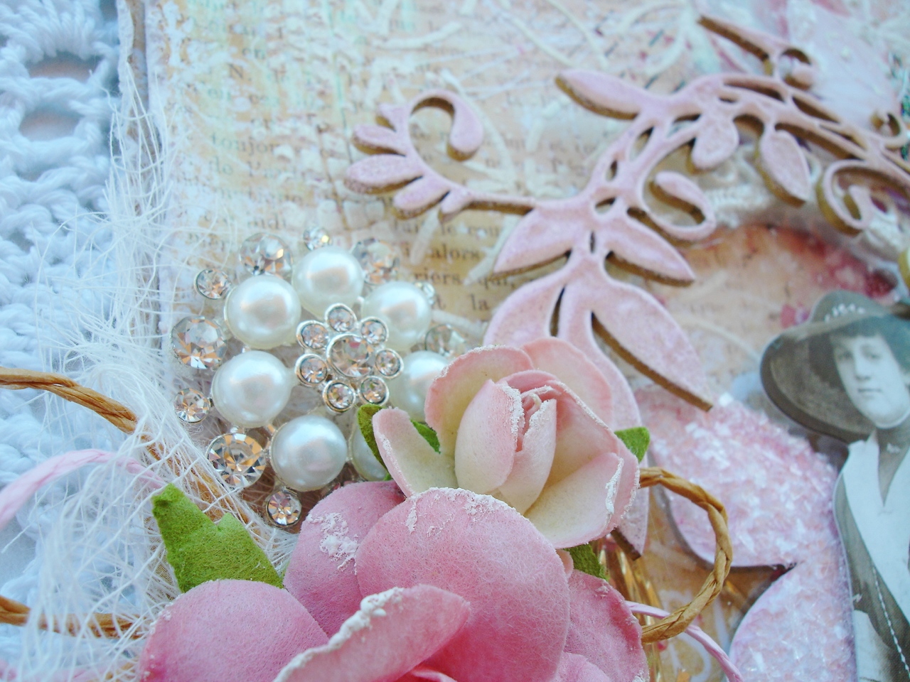 For more texture (because I can never have enough) I added beads, art stones and Blue Fern Studios seedlings and embossing powder glitter. I gathered some embellishments from my stash to complete this layout!